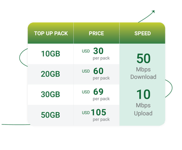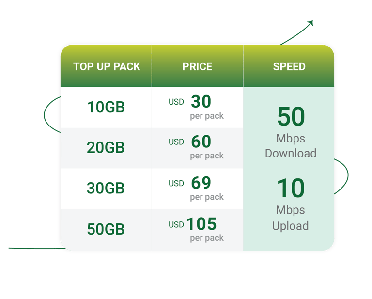 Excess usage charges of USD 3 per gigabyte will apply once data allocation is fully consumed if a top-up pack is not purchased.