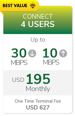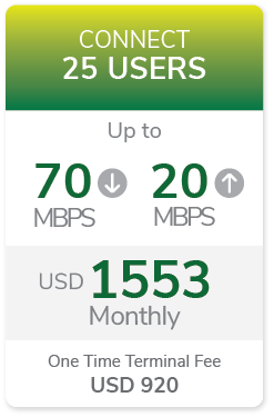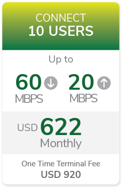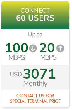 The terminal fee includes a 1.2m antenna, a 2010 or 2510 modem, and a 2W or 3W transceiver depending on the type of terminal ordered.